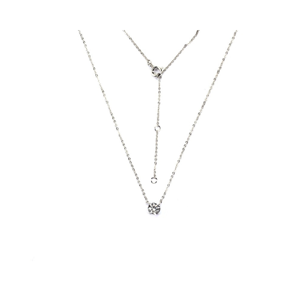 Colier din argint placat cu rodiu, cu pandantiv cristal de zircon mare.